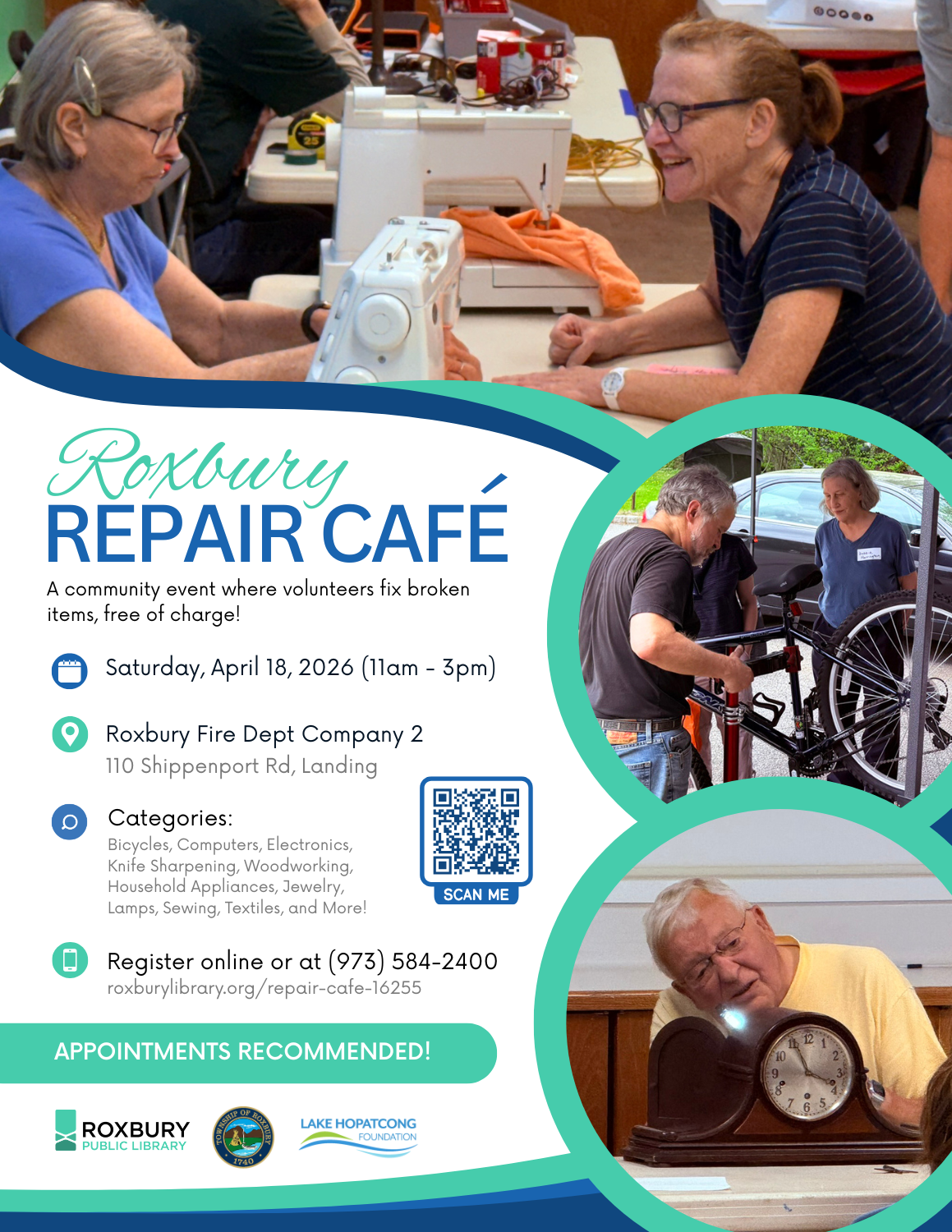 We’d love for you to join us on Saturday, April 18, 2026, from 11:00 am to 3:00 pm at Roxbury Fire Co. #2 in Landing for the return of the Roxbury Repair Café. Built on a simple but powerful idea - bring your items, meet your neighbors, and see what we can fix together - this free community event is hosted in partnership with the Roxbury Public Library and Roxbury Township Recycling. It’s one of our favorite ways to bring people together around sustainability in a hands-on, meaningful way.