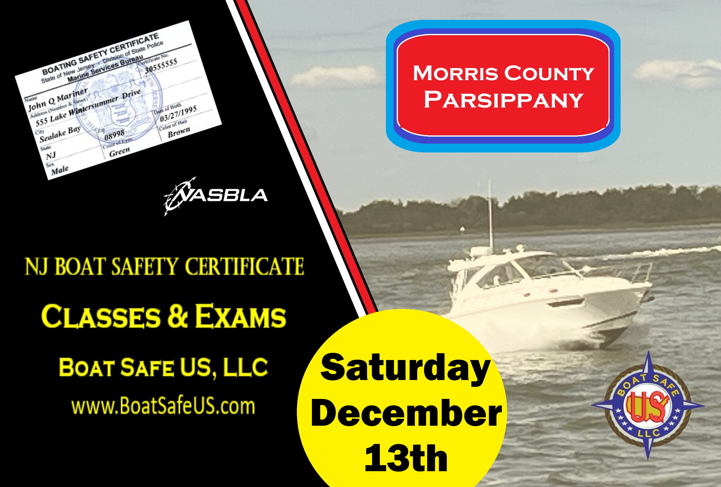 Morris County, NJ Boat Safety Class and Exam in Parsippany (One Day)
