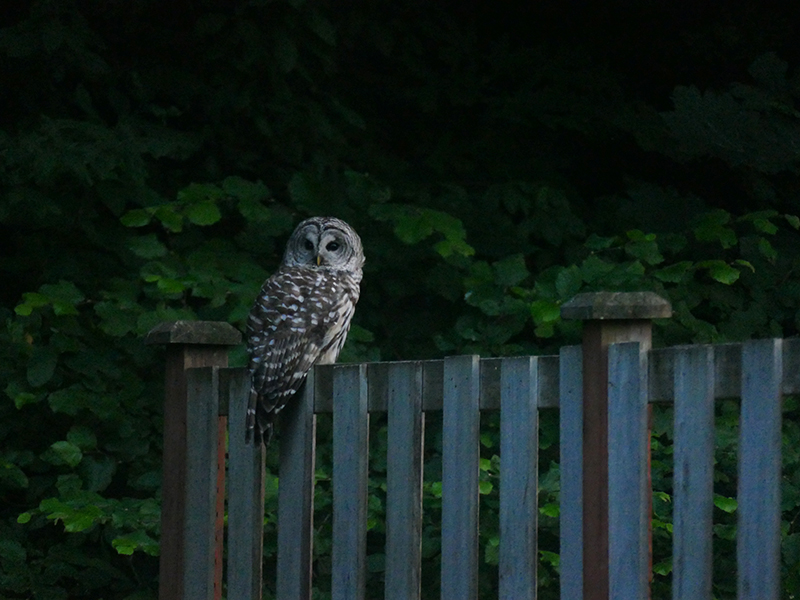Barred owls (and all owls!) cannot do that. Their eyes are fixed in place and cannot move within their sockets. What they lose in eye mobility, however, they make up for with exceptional low-light vision and incredible neck flexibility. This is why owls can rotate their heads up to 270 degrees, allowing them to scan their surroundings without ever moving their eyes.