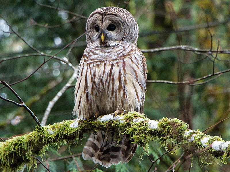 With its rounded head and dark eyes, the barred owl has a classic owl appearance. However, it is most often identified not by sight, but by sound.