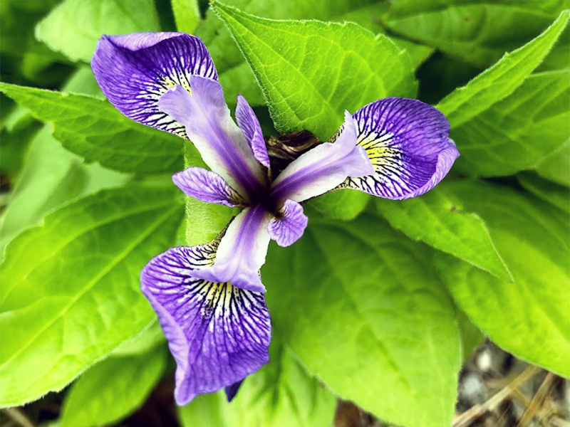 Blue Flag Iris (Iris versicolor)Blue Flag Iris forms beautiful patches of deep blue flowers and is ideal for naturalizing along lakeshores and in low, wet areas. Native Americans and early colonists used the dried rhizome in carefully prepared medicinal applications, and the plant’s fibers were used to make strong twine. The flowers attract hummingbirds and butterflies.